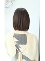あごラインの切りっぱなしボブ★ゆるいクセとボリュームをコンパクトに抑えるため、チューニングで柔らかい自然なストレートヘアに!赤みをしっかり消すマット系のカラーで仕上げました