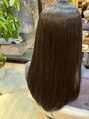 カラーを暗くすることによって更に艶が出る様にしました。※縮毛矯正の様に癖は取れません。