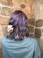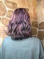 濃い~淡い紫を何色か使って紫陽花をイメージ*立体感が可愛い♪#ウェーブ巻き#ハイライト#個性派カラー#ダブルカラー