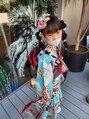可愛いお着物に合わせてツインテール・ツインおだんごのヘアアレンジ。 ママお手製のポンポン髪飾りがとってもマッチしていてキュートに仕上がりました♪【BELL用賀/桜新町】