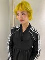 ブリーチ毛をライム系のイエローに。色が落ちてもブロンドに抜けるので、落ちる過程も楽しめます◎伸ばしかけのショートですが丸みを持たせて襟足を残し、スタイリングを楽しめるようにしました。