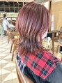 ナチュラルなウルフもチェリーピンクのカラーで少し個性的に☆ハイライトでしっかり色味を出してあげると高発色♪