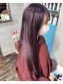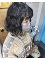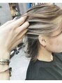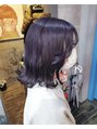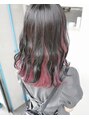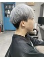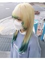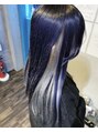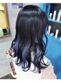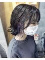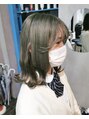 軽めのミディアムウルフにカットしました!カラーはアッシュグレーのベースカラーにネープをブリーチしてブルーを入れました!
