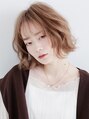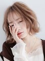 揺れる髪、毛先は外ハネ。カラーはハイトーンベージュ。