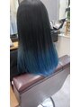 要ブリーチ1~2回。人気のブルー系カラーです。毛先にかけてのグラデーションカラーは巻いてもストレートでも可愛いです♪はっきりした色味や、派手なお色は、マニパニや、カラートリートメント(別途カラー料金+2500円)でも色持ちがよく、オススメです♪