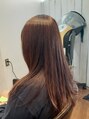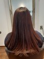 ロングスタイルベースに、毛先中心にやや前上がりでレイヤーシャギーを入れて、質感毛量調整を施して、まとまりやすさと軽さを融合させるようにカットして、縮毛矯正、カラー、超音波トリートメントしました