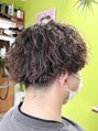 メンズのツイストスパイラルパーマです。サイドとバックを刈り上げて2ブロックに。長めのツイスパと短めのアウトラインでメリハリの効いたスタイルに。カラーをしていても処理剤としてプレックス剤をMIXすればダメージも抑えられてキレイな仕上がりに。