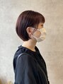 丸みのあるショートボブにカットし、ピンクブラウンカラーにしました