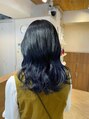 毛先のみブリーチしてあるグラデーションのベースだったので、それを活かしたブルーブラックのグラデーションカラー◎色が落ちてくるとブリーチしてある部分はグレーっぽく落ちてきます!
