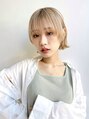 顎くらいの大人ショート、ミニボブ。ベージュカラーで、透明感と柔らかい印象になれます。オイルバームを髪全体に馴染ませるだけのツヤ髪になれる簡単スタイリング。