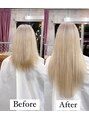ダブルカラーでホワイトブロンドにカラーしてからシールエクステ80枚でロングスタイルにしました。