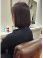 髪の芯のあるブラウンに暖色系が入ることによってツヤカラーに!アプリエカラーを使うのでふんわりとした柔らかい質感になります