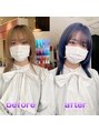 ケアブリーチを使用してダメージレスなブリーチワークと、髪質改善で透明感あるバイオレット系のカラーに仕上げています!ブリーカラーのイメージであるダメージを最小限に抑えカラー後の方が髪質が綺麗になります。