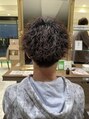 フルバング。軽い質感と動きに拘ったツイストスパイラルパーマ。元々動きの出やすい髪質を活かしてパーマをかけています。後ろは小さく、前の方にボリュームを出して動きを加える王道スタイル。ベーシックな形が好きな方はこちらのスタイルがオススメです。