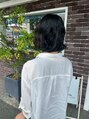 艶々のまとまるbobです♪顔まわりはセンター分けで大人な雰囲気も♪透明感のある暗めなカラーでより艶が増して見えます!