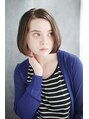 かきあげた前髪に重めのワンカールボブスタイルです。明るい雰囲気のスタイルはアクティブな印象をもち人気のスタイルです。