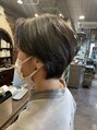 表面に悪目立ちしない様、見えるような、見えないような、、、スライシングでブリーチハイライトをON!!透明感のダークトーンを重ね、色抜けも楽しめる、オシャレさんショートスタイル◎