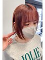 ぷつっとしたミニボブに春らしいコーラルピンクのベージュカラー。