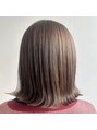 ぱつっとラインを残したボブに、顔まわりを前上がりに切り込んで変化をつけたスタイルに。癖の強い方はストレートパーマを当てるのがオススメです。