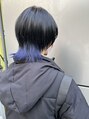 前髪のインナーと襟足をブルーにして個性的でおしゃれなウルフに。モードでかっこいいおしゃれが好きな方におすすめです(^^)