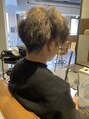 もともと癖毛でチリつく髪の毛が嫌との本人の意向でしたのでチリつきのなくなる波巻きパーマを提案させて頂きました。ワックスをつける前から形が完成されているのでスタイリングはかなり楽だと思います。