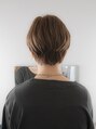 ユニセックスな雰囲気のショートボブ。センターパートでフロントに長さを残すことでクールでかっこいい女性の雰囲気に。カラーはローライトでコントラストをつけてこなれ感を演出。ショートに挑戦した大人女子におすすめです。[大島駅]