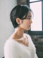 スッキリと首が見えるタイトなショートスタイル。バングは目の下くらいにカットして巻いておろしたりかきあげたりアレンジの出来る長さになっています。バングがシースルーなので襟足は軽すぎない質感でバランスをとっています。[大島駅]