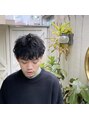 サラッとしたマッシュではなく、パーマと丁度いいレイヤーでフェミニンのような、はたまた野暮ったくもあるそんなマッシュヘア。