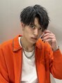 刈り上げありの耳周りスッキリ前下りマッシュスタイルです。王道ハーフアップほつれ質感パーマ