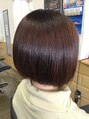 新規のお客様。今回当店でカラーをさせて頂きました♪明るめのオレンジ色のカラー。他店で毛染めをされた際地肌がしみたようなので、ダメージがほとんどないイノアオイルグロスカラーにて毛染め。しみることなく ツヤサラヘアに。