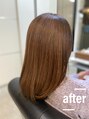 カット伸びすぎてたので綺麗にラインを揃えました。ストレートアイロンで簡単に仕上がります。カラーはベージュ系で春色カラーです。