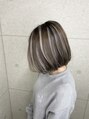 外国人風ウルフボブ ロブ ハイライトバレイヤージュ グレージュ