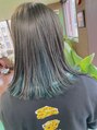 :外はねミディ :インナーカラー #オリーブカラー #ターコイズ/ホットペッパービューティー