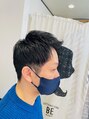 サイドはツーブロックでスッキリ、バックは刈り上げて自然な感じになるようにカットしています。前髪、トップは立ちげやすくなる様にカットし、仕上がりがシャープに収まるスタイルです。