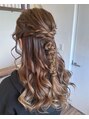 ハーフアップに人気のポコポコ編みおろしをMIXさせオシャレ感アップです♪