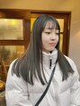 ブリーチ履歴のある髪に少し落ち着かせたオリーブベージュ。毛先はぷつっと揃えてまとまりやすく。