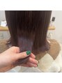 縛れる長さを残して、ぱつっとした毛先に仕上げました。外ハネが生かされます。カラーはラベンダーのお色です。光の当たり具合で色の見え方が変わります。※ブリーチしてないです。