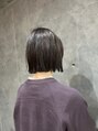 切りっぱなしボブ。毛先に厚みを残しながら中間の抜け感も意識。頭の形に合わせて自然に落ちる位置でカットしているので自宅での再現性も高いです。