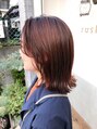 暖色カラー×パツっと切りっぱなしボブ