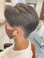 大人気の韓国風かき上げショート。センターパート、サイドパートもok。どなたにでも似合うスタイルです。ツーブロックの刈り上げも、あえて青くならない程度のソフトな雰囲気に仕上げて、爽やかな清潔感を出しています。ジェルやグリース、オイル等で艶感を