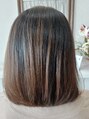肩につくぐらいのボブ前髪からかきあげて自然な流れがでるようにカット