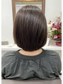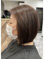 前回は少しウルフカットぽくしたのですが襟足をスッキリさせたいとのご希望でレイヤーが残るボブの仕上がりカラーもベージュ系で大人っぽくトリートメントもされてクセがある髪も落ち着きましたね毛量調節もしてボリュームを加減しました