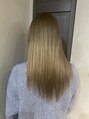 複雑履歴から作るハイトーンstyle☆可能な限りのブリーチ調整で、暗染めからハイトーンへ。1度は憧れるミルクティーベージュに♪ミルボンオージュアトリートメントでサラッサラな仕上がりに♪
