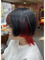 インナーカラー ケアブリーチ後チェリーレッドにトップはブルーブラックにビビットカラーでコントラストをつけました。