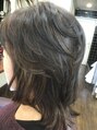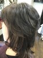 トップを短めにしてレイヤーを入れて、それに合わせるように、全体的に更にレイヤーを入れています。パーマは、フロント、サイド、トップにかけて、襟足はノーパーマです。ペリジュア、ヘマチンを使ってダメージ最小限。