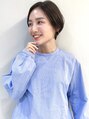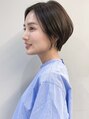 フラットめの少し前下がりのショートボブです。少し前下がりにする事で顔をシャープに見せる効果があります。耳掛けして2wayでお楽しみ頂ける飽きないスタイルになっています。