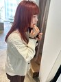 全体をブリーチ後にあえて根本は暗めのグリーンして(ルーツカラー)中間から毛先はパールグリーンをのせています!カットはブラントな質感に◎