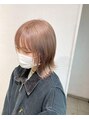 ピンクベージュ ミルクティー 外はねボブ ストレートヘア