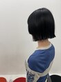 前にブリーチで明るくしてた髪の毛をブルーブラックに!!青みを強めに入れることで透明感が増します。パツっもした肩上ボブに姫カット、前髪とのバランスも良い感じに仕上げてます。