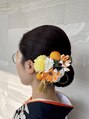 卒業式 ヘアセット シンプルシニヨン着物に合う上品なヘアスタイルです。面で魅せるツヤのあるスタイルなので年代問わず人気なヘアセットになります。